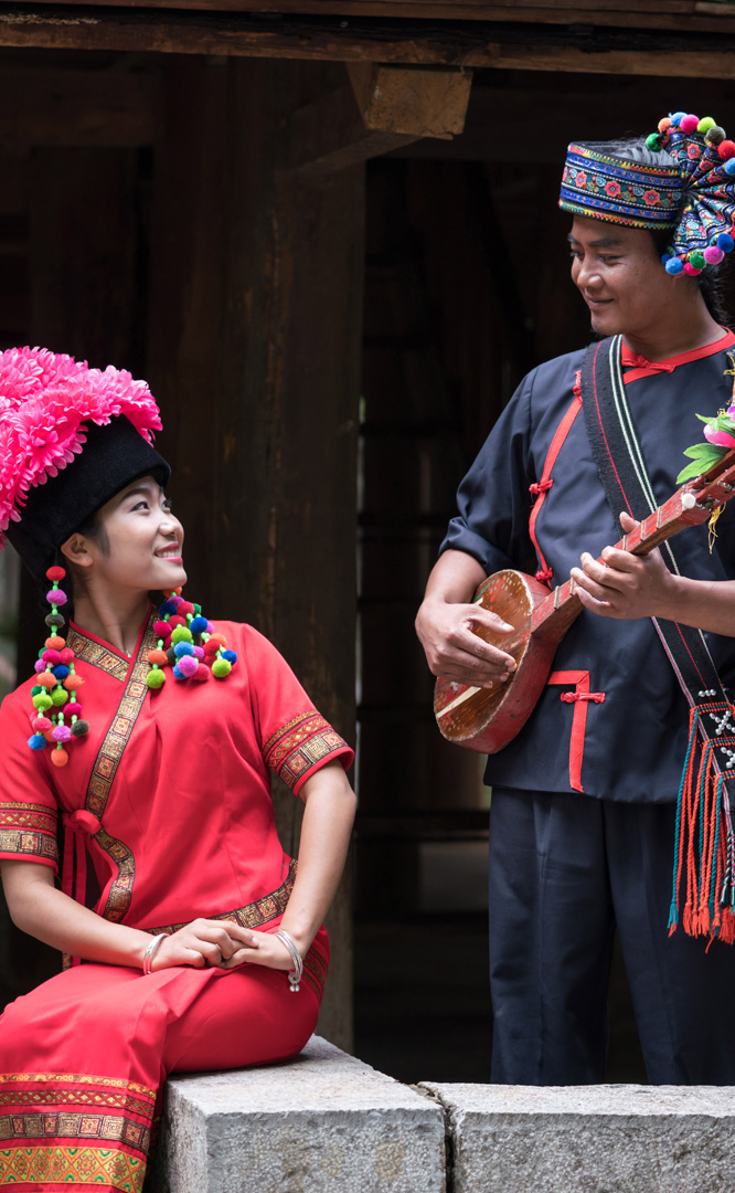 云南的布依族人口近5.5萬人,主要聚居于曲靖、文山、紅河幾個州、市的10余個縣境內,其族源歸為古代“百越”,曾有過“謝蠻”、“仲家”等稱代,是百越族系中駱越人的一支。農耕民族,以農歷紀年,物產豐富,自然條件較好;有語言,通行漢文,文學興盛,歌舞升平,民間信奉“萬物有靈、多神主宰”的原始宗教,代表節慶為祭社神節(六月初六)。布依族寨子傍水而建,兩幢民居忠于民間的構建方式,實現了邛籠系與板屋系建筑手法...